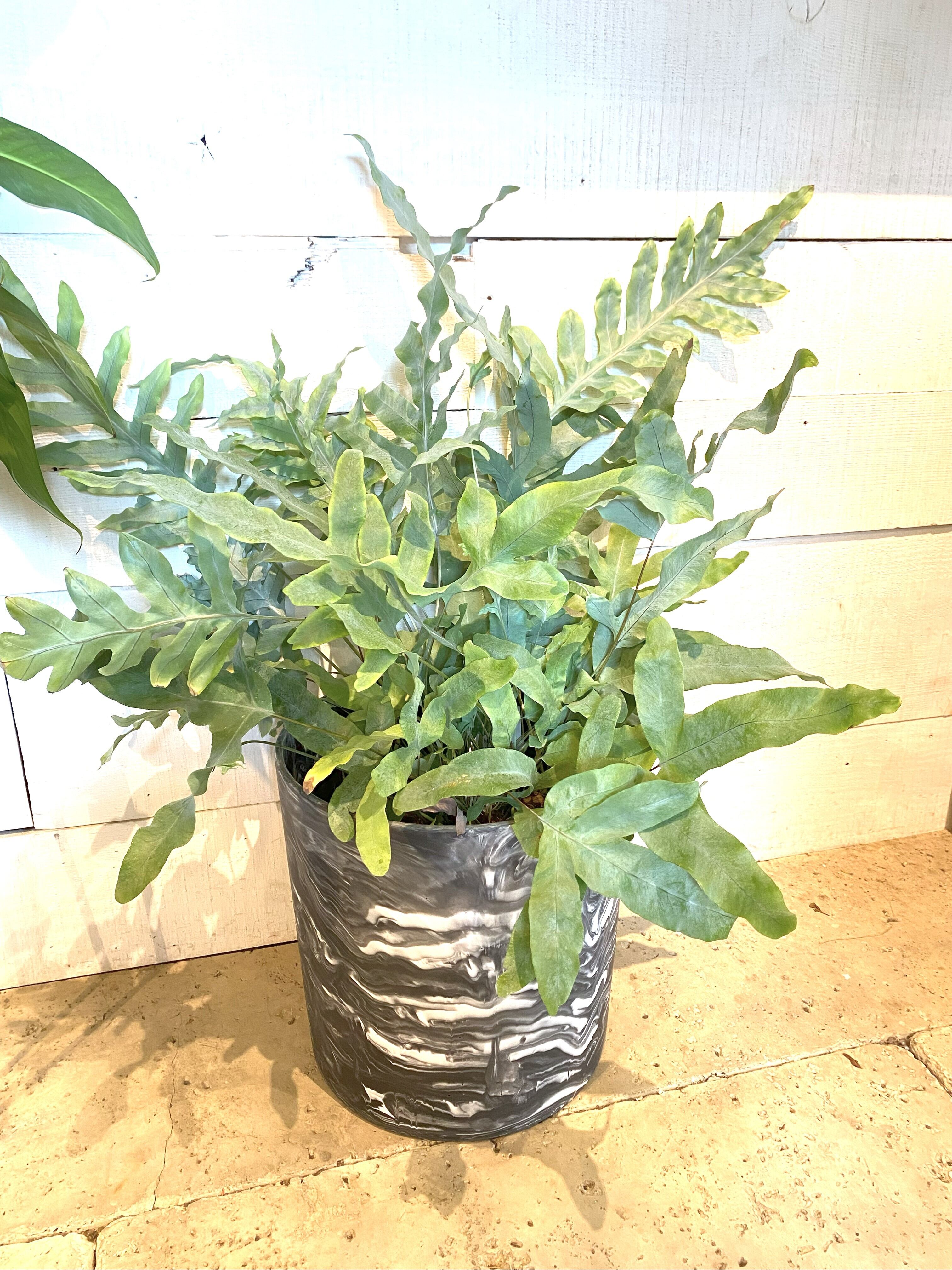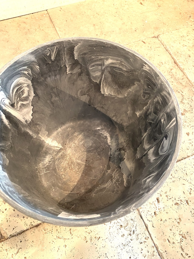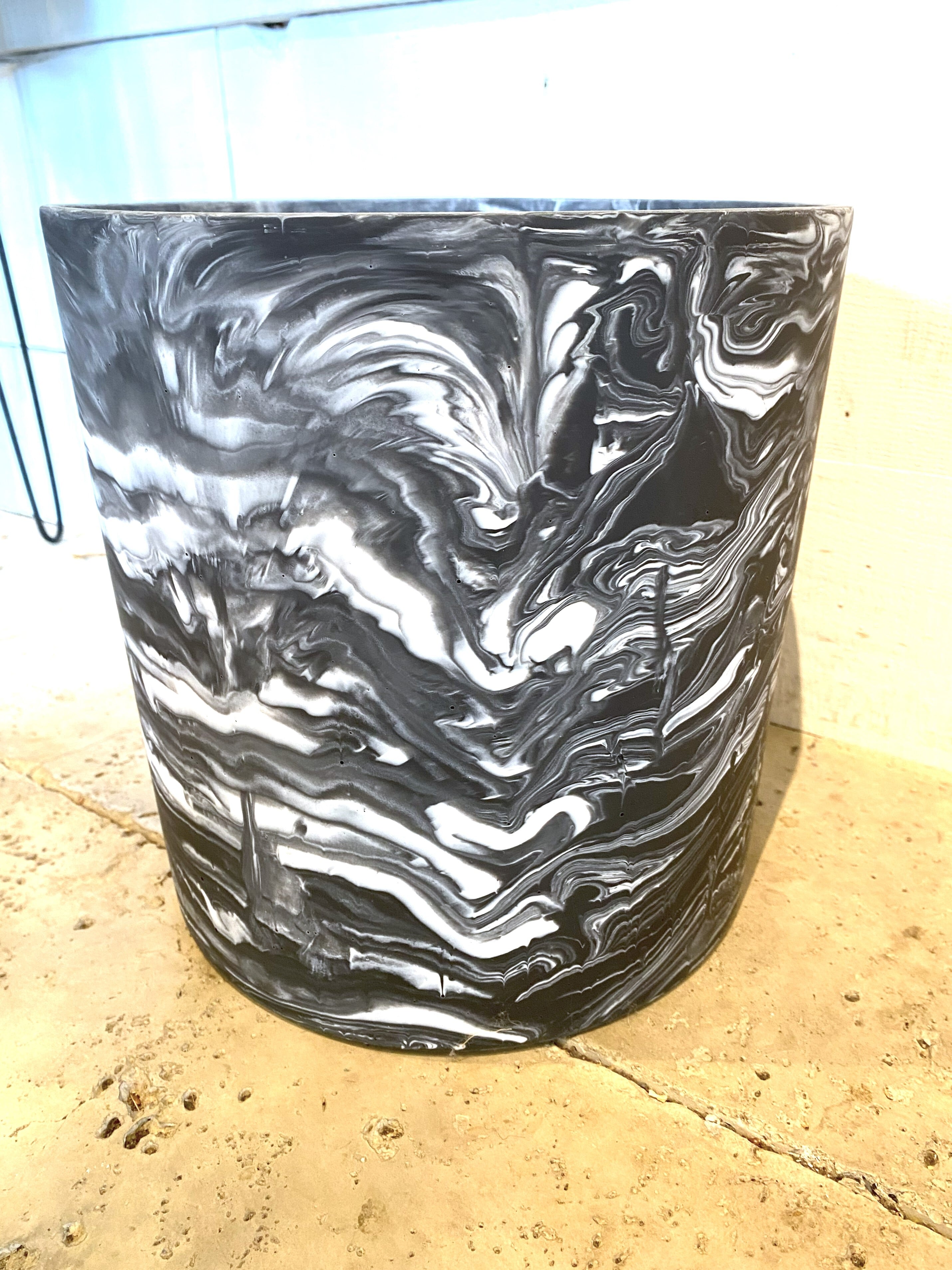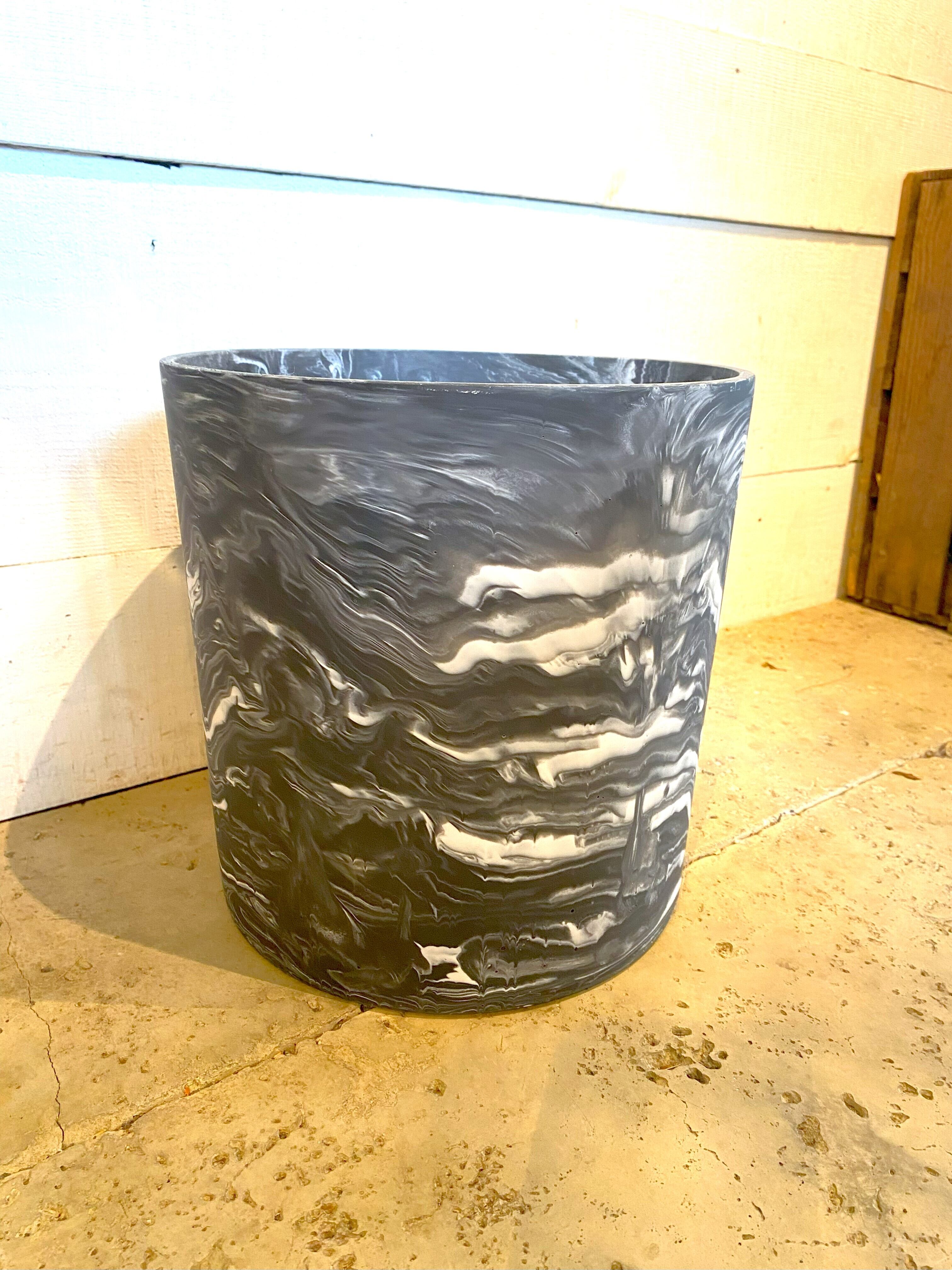 グレーとホワイトのマーブル模様が個性的な鉢カバー。
